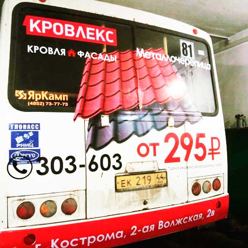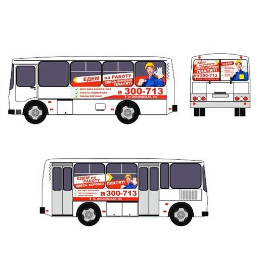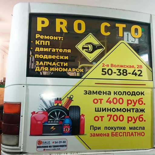 Брендирование (нанесение, оклейка) транспортных средств — нанесение специальной плёнки с изображением на внешние борта и стёкла транспортного средства. Данный вид рекламы очень широко применяется во всех городах. Его преимущества — узнаваемость, креативность. Рекламу видят и пассажиры входящие в транспорт, и прохожие, и автомобилисты. Мы предлагаем брендирование как отдельных частей транспортного средства: заднего стекла, заднего борта, боковых бортов, так и полное брендирование и оклейку транспортного средства.