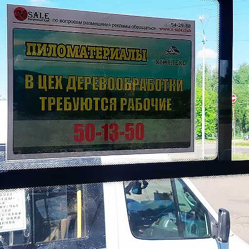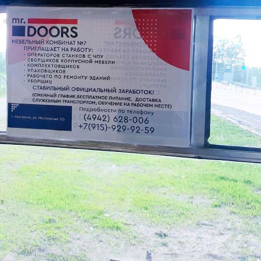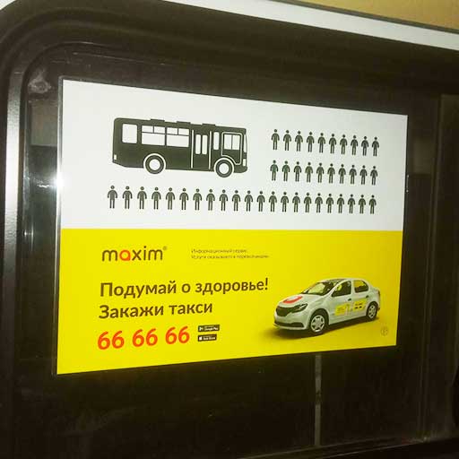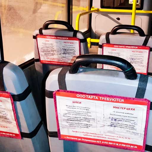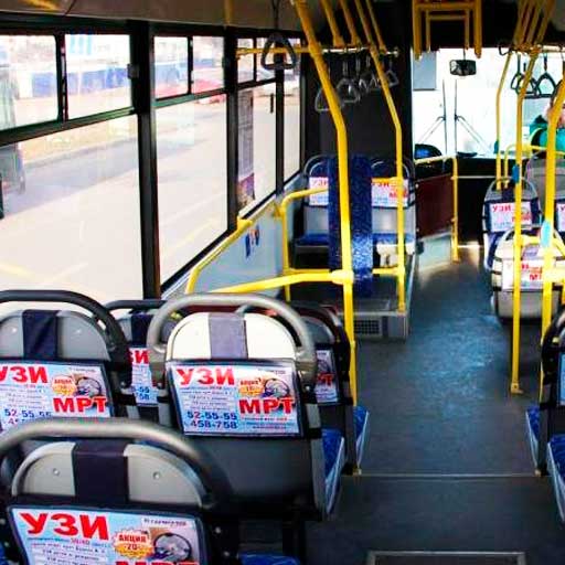 Данный вид рекламы располагается внутри салона. Преимущество в том, что рекламу видят непосредственно пассажиры, реклама вся расположена в просматриваемых местах: можно разместить достаточно много информации различного характера.