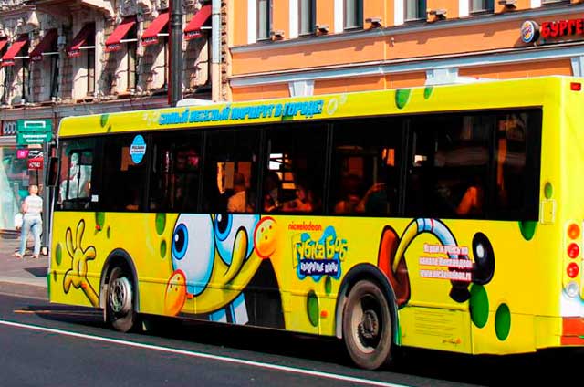 Автобусы, пожалуй, самые большие в городском потоке, поэтому вы можете разместить от 20 до 40 квадратных метров вашей рекламы и у вас появится удивительная возможность сделать интересный креатив и сложную рекламу — это привлекает внимание.